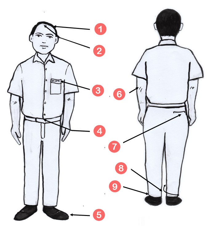 - කමිසය නිවැරදිව කලිසමට යට කළ යුතුය.